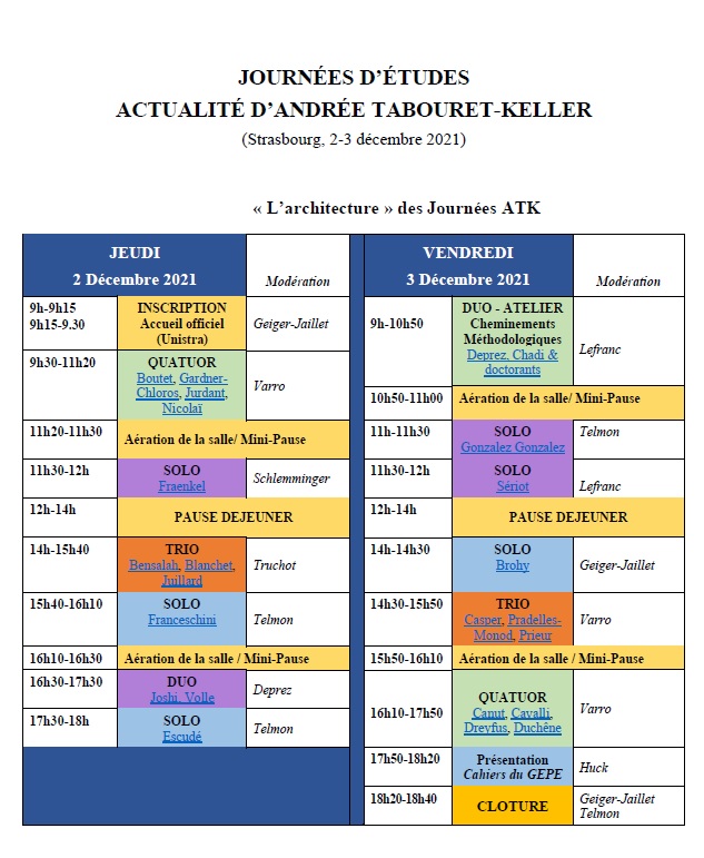 17h50 – 18h20 – PRÉSENTATION d’un numéro spécial des CAHIERS DU GEPE dédié à ATK : Dominique Huck